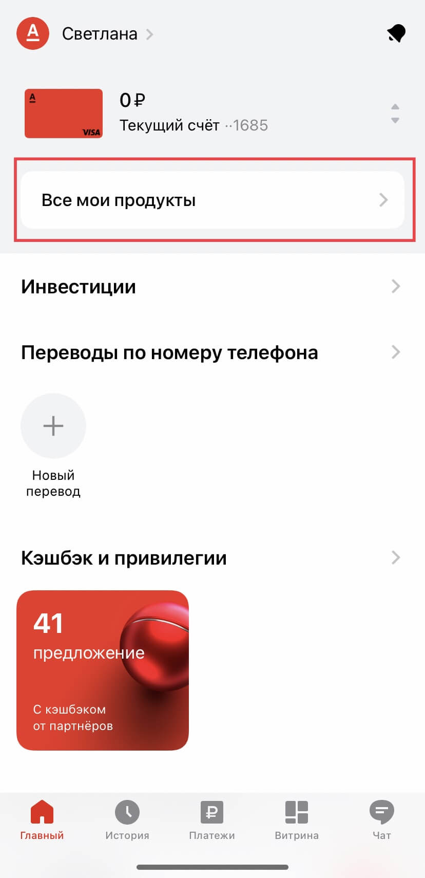 1. Войдите в мобильное приложение банка.