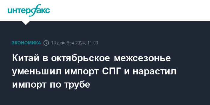 Китай в октябрьское межсезонье уменьшил импорт СПГ и нарастил импорт по трубе