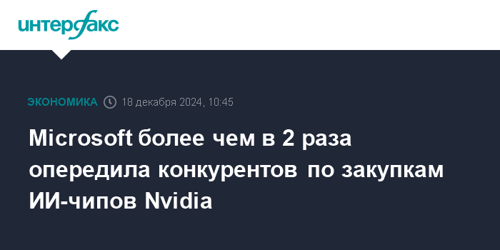 Microsoft более чем в 2 раза опередила конкурентов по закупкам ИИ-чипов Nvidia