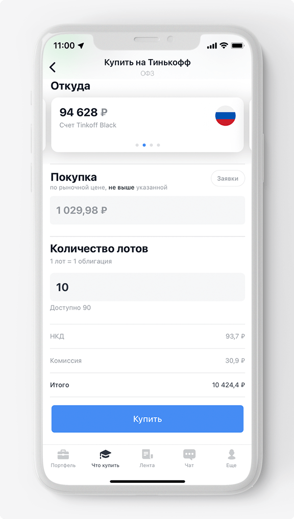 Выберите вкладку «Счет» или «Мои инвестиции».